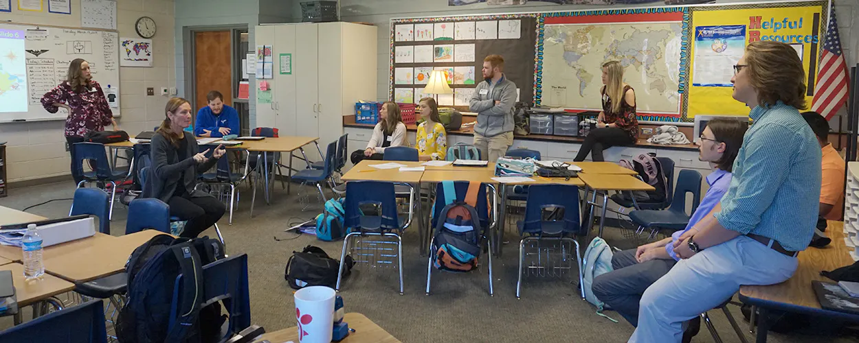 Each week during the spring semester, 35 UGA teacher candidates in secondary social studies education take their field experience course in Batson's classroom with half attending a class on Tuesdays and half on Thursdays. The UGA students work with middle school students in small groups to support their learning, including conducting formative assessments and one-on-one conferencing related to learning outcomes. The sixth-graders benefit from differentiated instruction that enhances their understanding of social studies concepts.