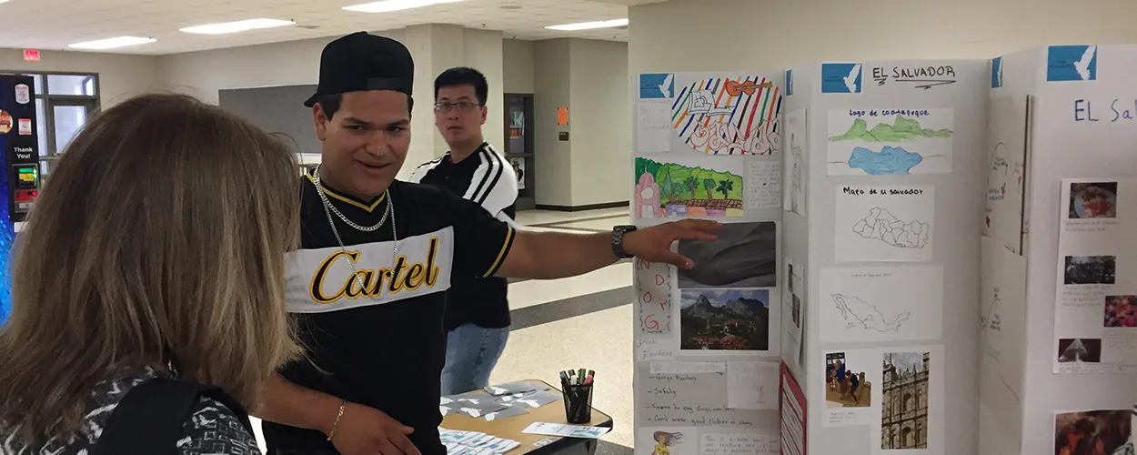 For example, Sandor Giron, 17, came to the United States from El Salvador. His presentation included images of his favorite food and a depiction of the typical architecture in the town where he lived—as well as the gang violence and other hardships that were a part of growing up there.