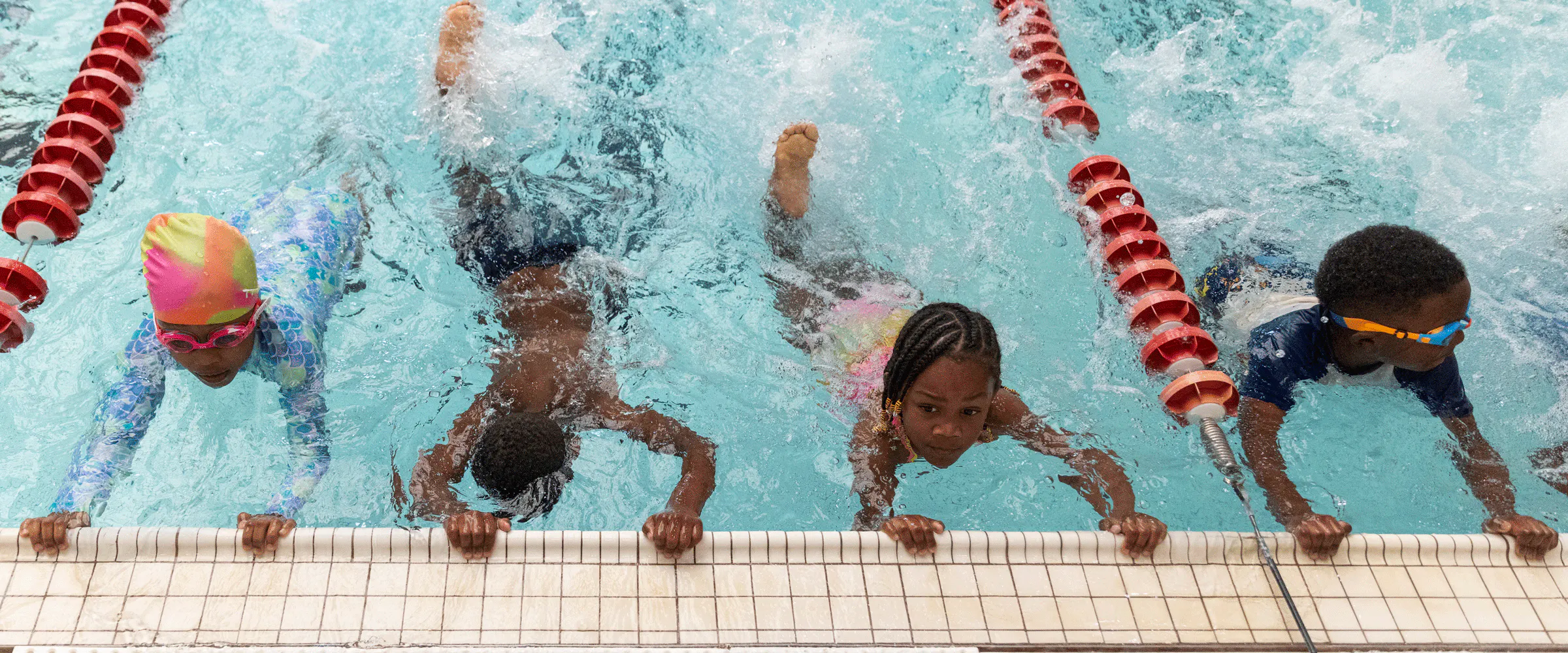 During swim sessions, students practiced floating and learned how to do ice cream scoops—or freestyle swim—to reach the edge of the pool safely. Through learning these life-saving skills, students then transfer their newfound confidence in the pool to the classroom and focus on cultivating future success.
